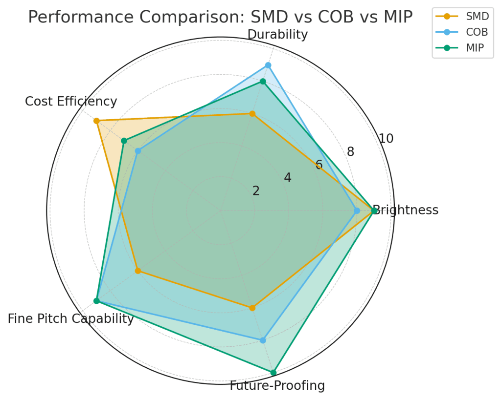 SMD مقابل COB مقابل MIP: الاختلافات الرئيسية في تقنية حائط الفيديو LED