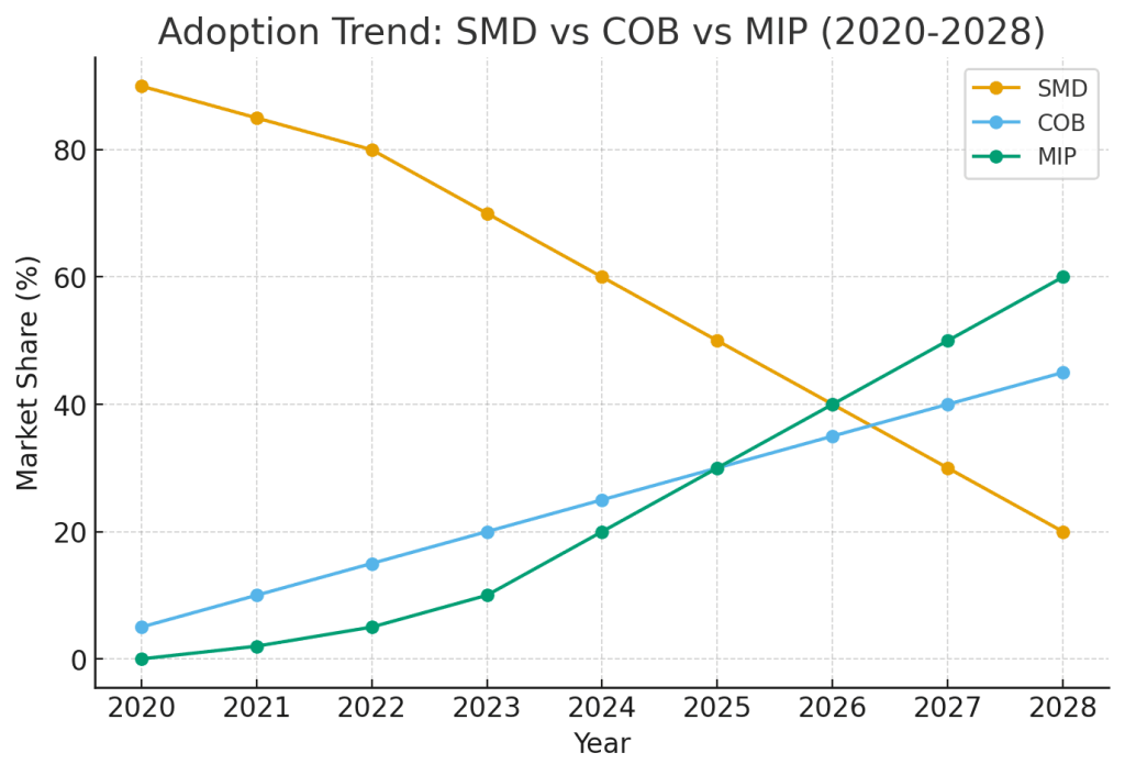 • MIP يُنظر إليه على أنه تكنولوجيا الجيل التاليوسد الفجوة إلى مصابيح LED الصغيرة.